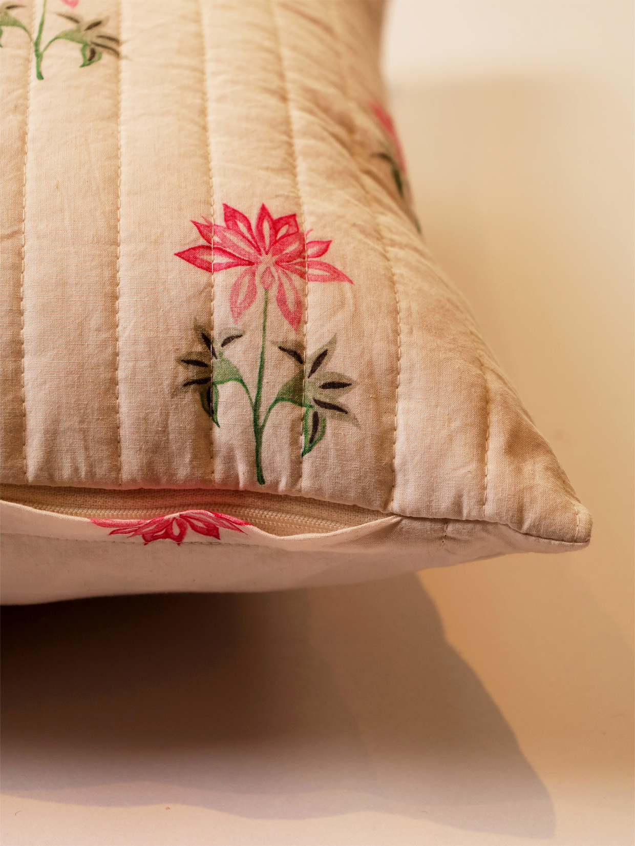 A gentle blend of comfort and craft, our quilted shams bring quiet luxury to everyday living. Crafted in 100% cotton percale, each piece features delicate floral motifs on the front with a plain back - soft to the touch, refined in style, and timeless in appeal.