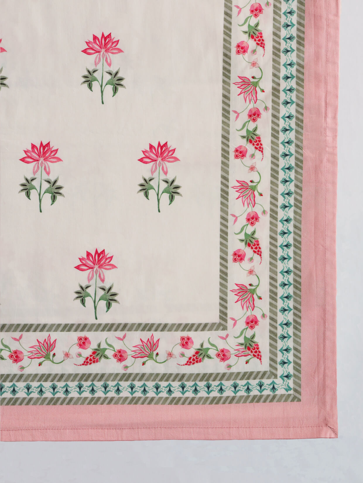 Complementing them are the Zahra Cushion Covers, printed on percale with hand-painted floral motifs, finished with delicate piping and a concealed zipper. Designed for layering or styling on their own, they bring a gentle, timeless charm to any corner of your home.